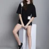 Stay effortlessly stylish with this black oversized T-shirt from Door74, designed for maximum comfort with a modern edge. Crafted from soft, breathable cotton, it features a relaxed oversized fit and a classic round neckline for easy, everyday wear. The subtle floral print detail adds a touch of freshness, making it a versatile wardrobe staple. Perfect for casual outings, travel days, or laid-back weekends, this longline T-shirt pairs seamlessly with shorts, jeans, or joggers for an on-trend look.