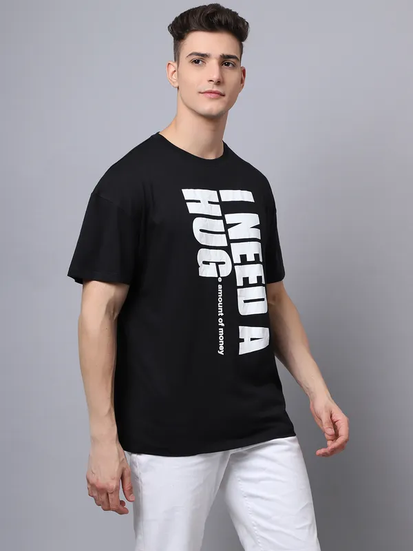 Upgrade your everyday streetwear with this T-shirt from Door74, crafted for comfort with a bold, modern attitude. Made from soft, breathable cotton fabric, this black oversized T-shirt features a relaxed fit and a classic round neckline for effortless all-day wear. The striking typographic print adds a confident edge, making it a perfect choice for casual outings, travel days, or off-duty looks. Style this T-shirt from Door74 with jeans, cargos, or shorts for a clean, on-trend finish.Upgrade your everyday streetwear with this T-shirt from Door74, crafted for comfort with a bold, modern attitude. Made from soft, breathable cotton fabric, this black oversized T-shirt features a relaxed fit and a classic round neckline for effortless all-day wear. The striking typographic print adds a confident edge, making it a perfect choice for casual outings, travel days, or off-duty looks. Style this T-shirt from Door74 with jeans, cargos, or shorts for a clean, on-trend finish.