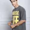 Dark Grey Cotton Printed Oversized T-shirt For Men
