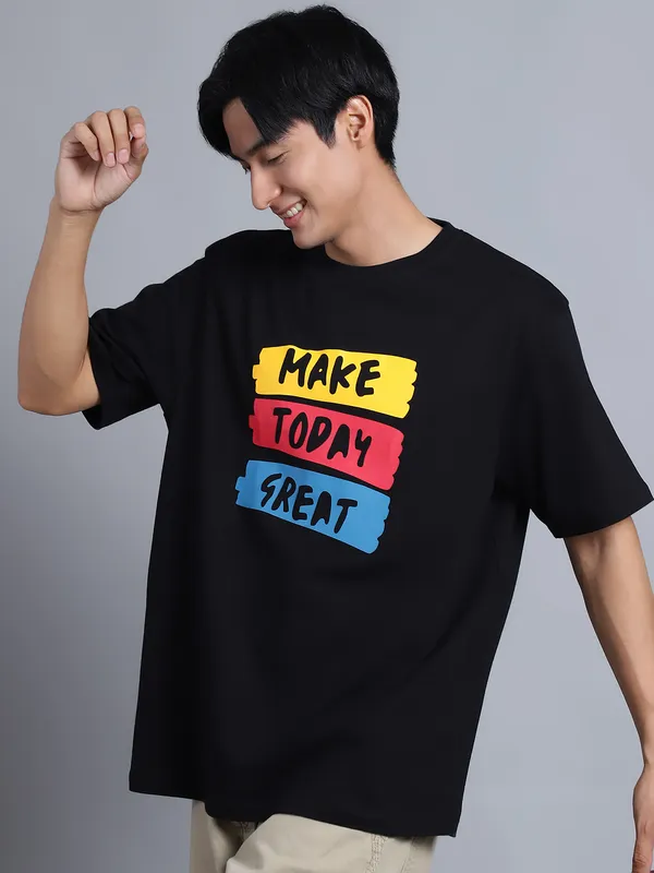 Black Cotton Printed Oversized T-Shirt For Men