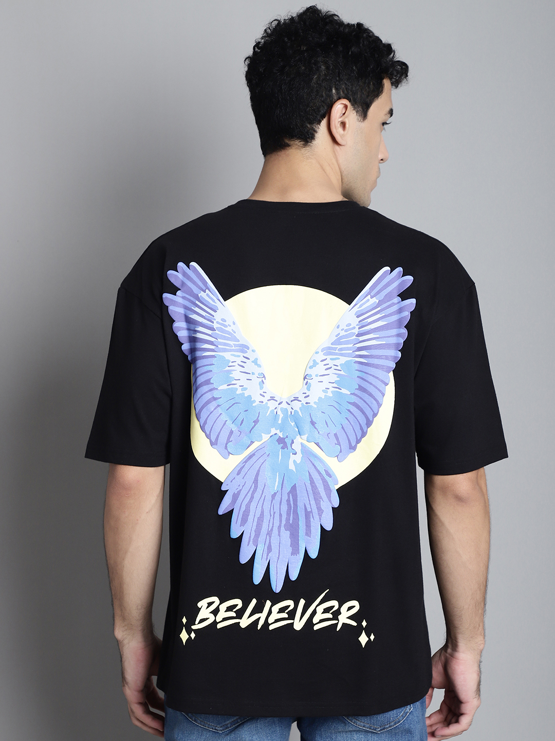 Black Cotton Printed Oversized T-Shirt For Men