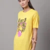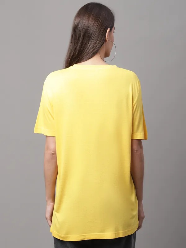 Yellow Cotton Printed Regular Fit Round Neck T-Shirt For Women