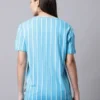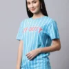 This stripe T-shirt for women has a very easy everyday feel. The fit sits regular, so it feels comfortable without looking loose. The blue color and vertical stripes give it a fresh look, and the front print adds a little extra without making it feel too much. This regular fit T-shirt for women goes well with jeans, shorts, or joggers when you want something simple that still looks nice.