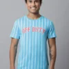 This blue and white striped T-shirt has a fresh look, but it still feels easy enough for everyday wear. The stripes and front print give it more character than a plain tee, yet it still goes with jeans without much thought. Door74 keeps the fit simple and comfortable, so you can also wear it with shorts or joggers and head out.