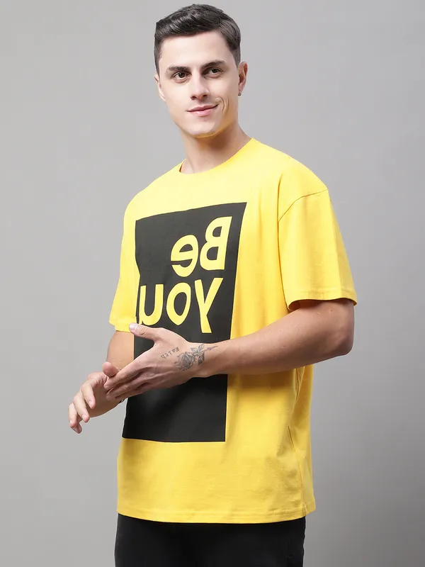 Stay comfortable and fashionable in this Door74 men’s oversized T-shirt, designed for effortless everyday street style. Made from soft, breathable cotton, it keeps you relaxed all day while the oversized fit gives you a trendy, laid-back look. Available in Navy Blue & Yellow, this tee features a bold “Be You” print that adds a fresh and modern vibe to your outfit. Perfect for casual outings, travel, and weekend wear—pair it with jeans, joggers, or shorts for an easy stylish look.