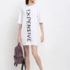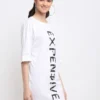 This printed T-shirt dress for women feels comfortable from the moment you put it on. The fit is loose, the look is clean, and the bold front print gives it a bit of character without making it feel too much. It is one of those outfits you can wear when you do not want to spend time thinking about styling. This long T-shirt dress goes well with sneakers, flats, or sliders for casual everyday plans.