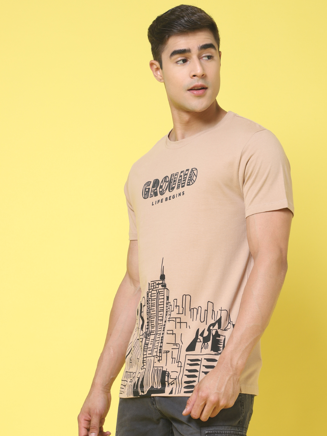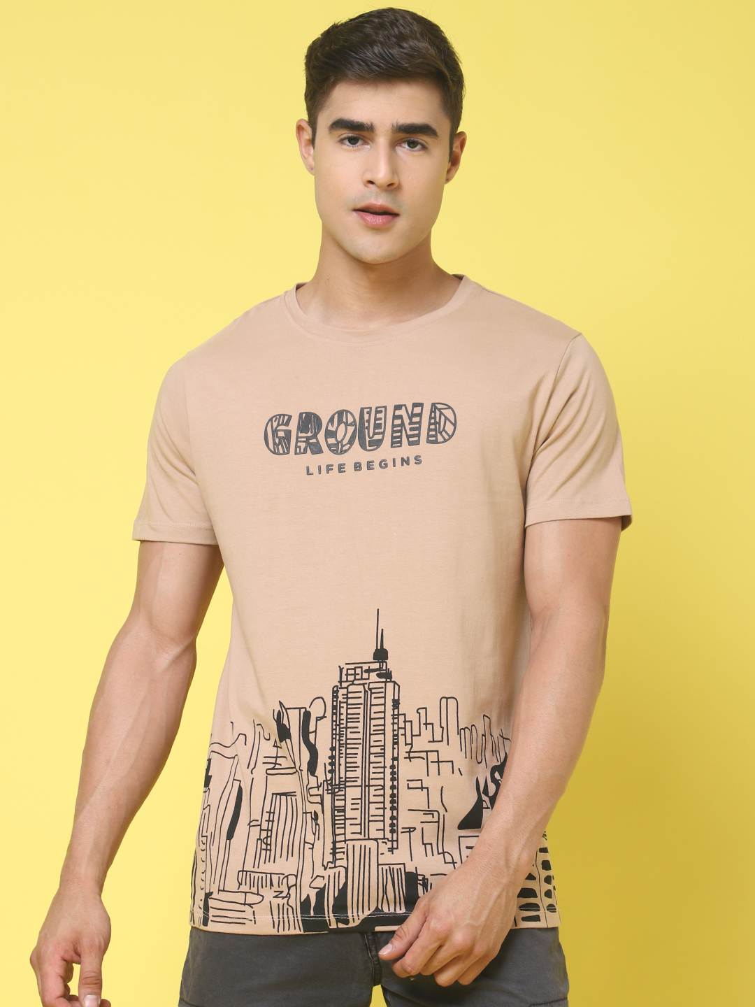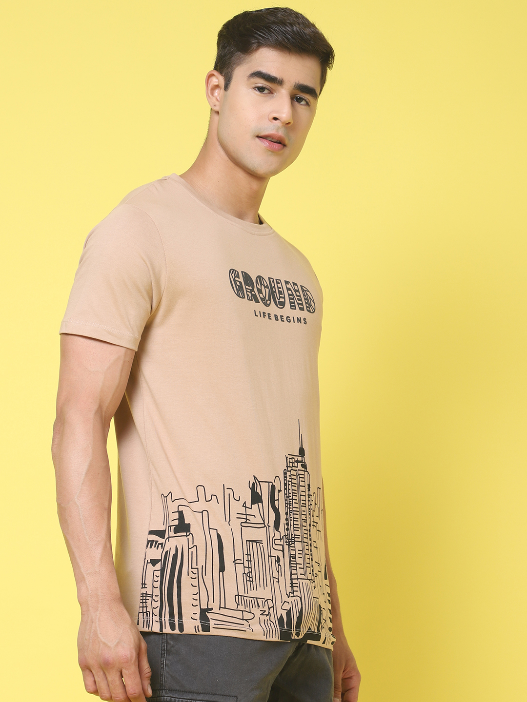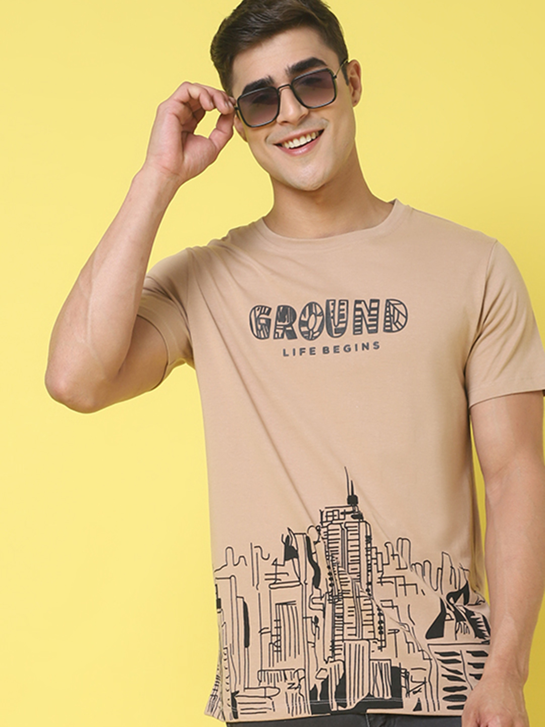The printed brown regular T-shirt has a clean everyday look, but the city print gives it a little more character. As a brown regular-fit T-shirt for men, it feels easy to wear and easy to pair with jeans, joggers, or shorts. Door74 keeps this city print T-shirt simple and comfortable, so it works well for regular days when you just want something easy.