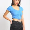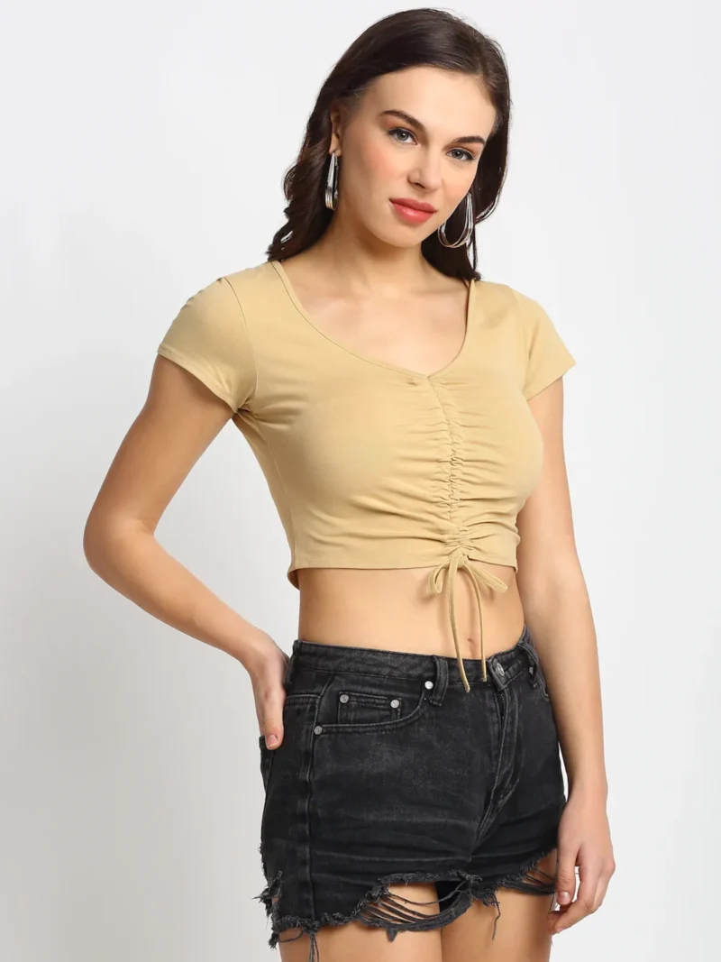 Door74 Stylish Brown Front Gather Crop Womens Top