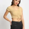 Refined yet effortlessly stylish, this navy front-gathered crop top from Door74 is designed to elevate your everyday look. The adjustable ruched front with tie-up detail allows a customizable fit while adding a flattering, feminine silhouette. Crafted from soft, stretchable fabric, it offers all-day comfort without compromising on style. Perfect for casual outings, evening plans, or weekend styling, this versatile piece pairs beautifully with high-waist jeans, trousers, or skirts.