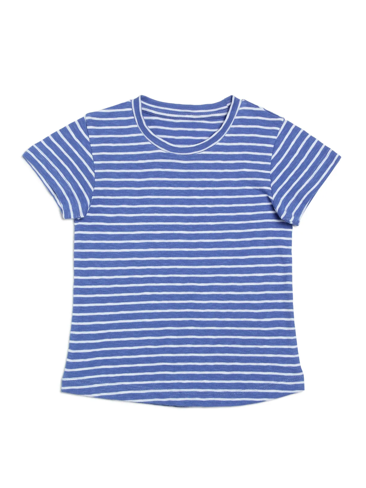 Keep your little one comfortable and stylish with this classic blue and white striped T-shirt. Crafted from soft, breathable cotton, this unisex tee is gentle on the skin and perfect for all-day wear. The round neck and short sleeves offer easy movement, while the regular fit ensures a relaxed and comfortable feel.