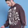 Brown Printed Hoodie For Men With Relaxed Street Style