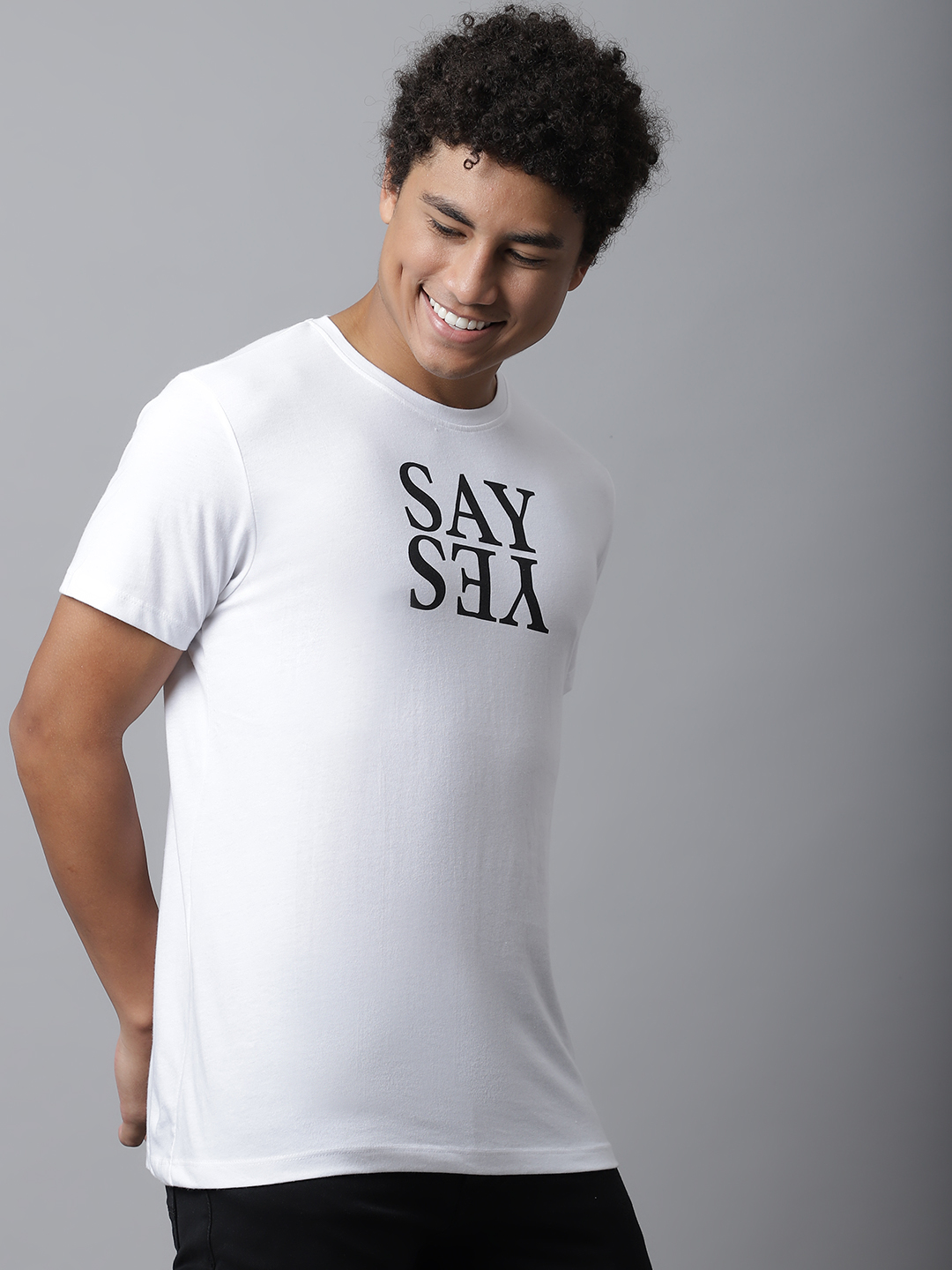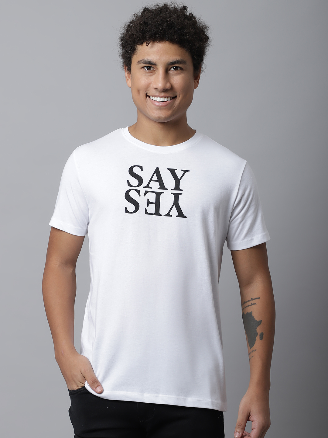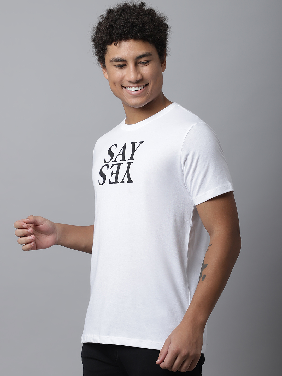 White Graphic T-shirt For Men With Say Yes Print
