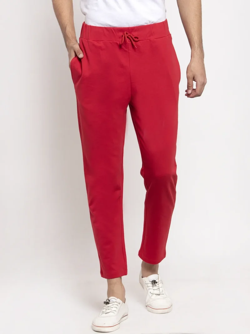 Red Cotton Solid Jogger For Men