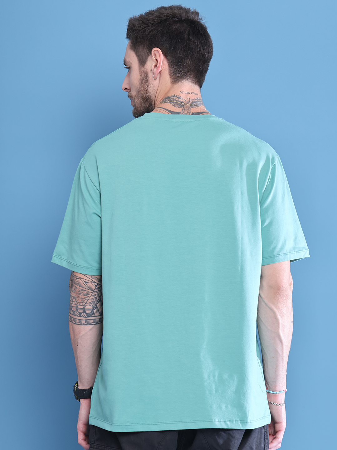 Teal Cotton Printed Oversized T-Shirt For Men