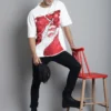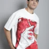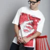 The white smoking handprint oversized T-shirt for men has a strong front graphic, but it still feels easy to wear. This white smoking handprint T-shirt for men stands out on its own, yet it goes really well with jeans in the middle of a regular day. Door74 keeps the fit relaxed, so this men’s white and red abstract print oversized tee also works nicely with joggers or shorts when you want something simple but not plain.