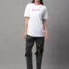 This white everyday t-shirt feels simple and easy to wear. The fit sits regularly, so it does not feel too loose or too fitted, and the small front print gives it a fun touch. You can wear it with jeans, shorts, or joggers without thinking much. If you like cute white graphic tees, this one has that same easy everyday feel.