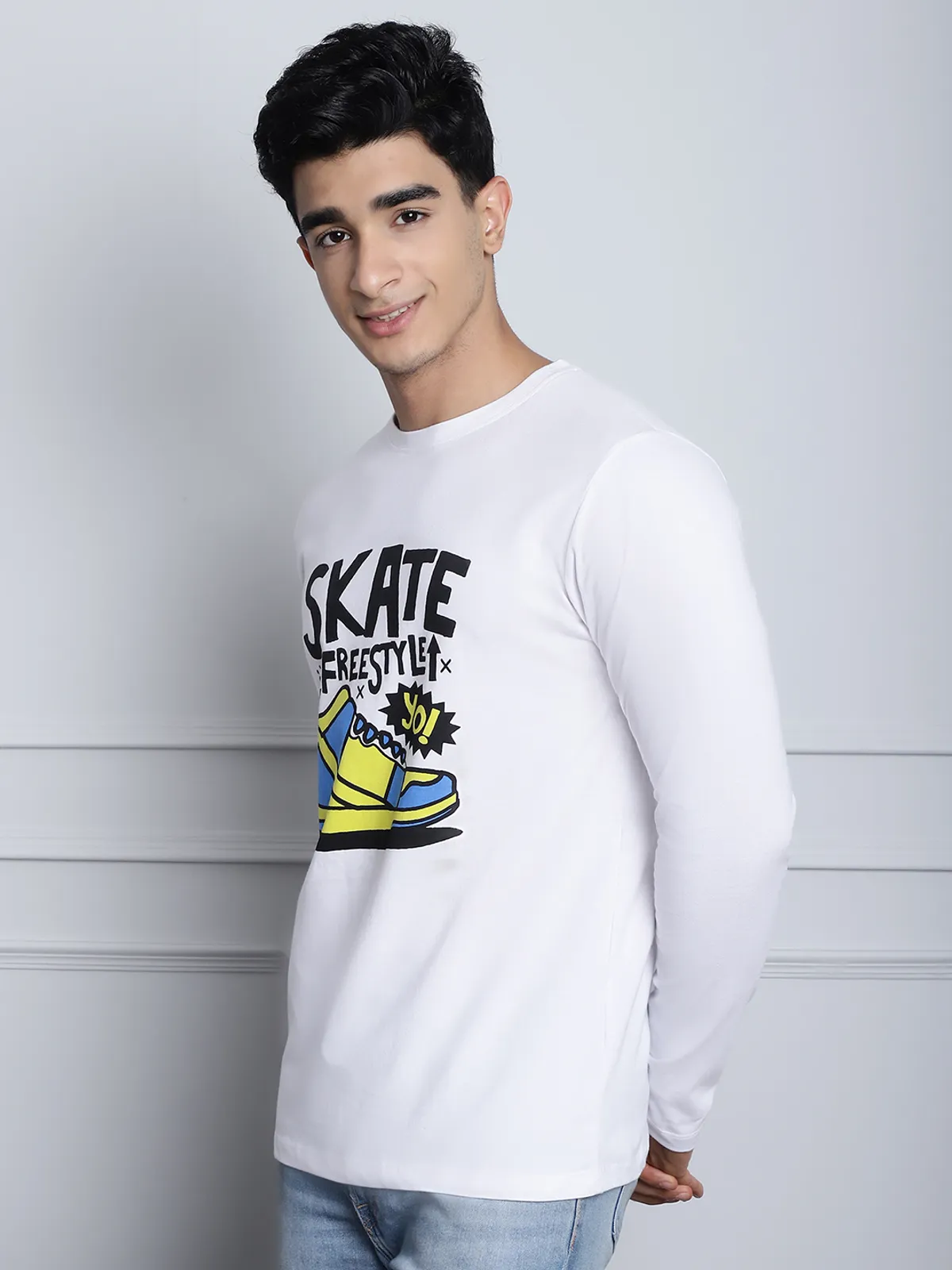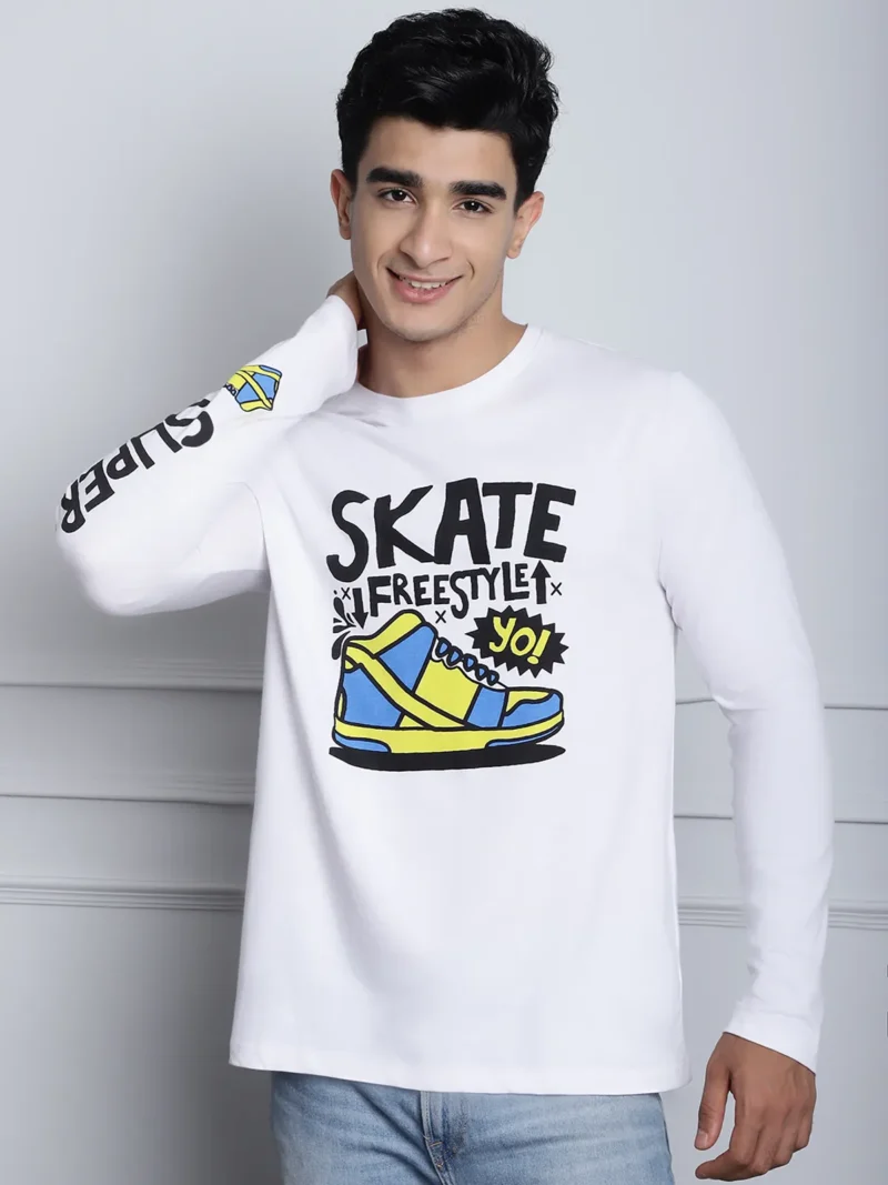 Stay cool and stylish in our Door74 men’s White regular fit t-shirt, featuring a vibrant “SKATE Freestyle” graphic print with sneaker design for a sporty streetwear vibe. Made from soft, breathable cotton fabric, this regular fit ensures all-day comfort and easy movement. Perfect for casual outings, travel, or daily wear pair it with jeans, joggers, or shorts for a fresh, youthful look.